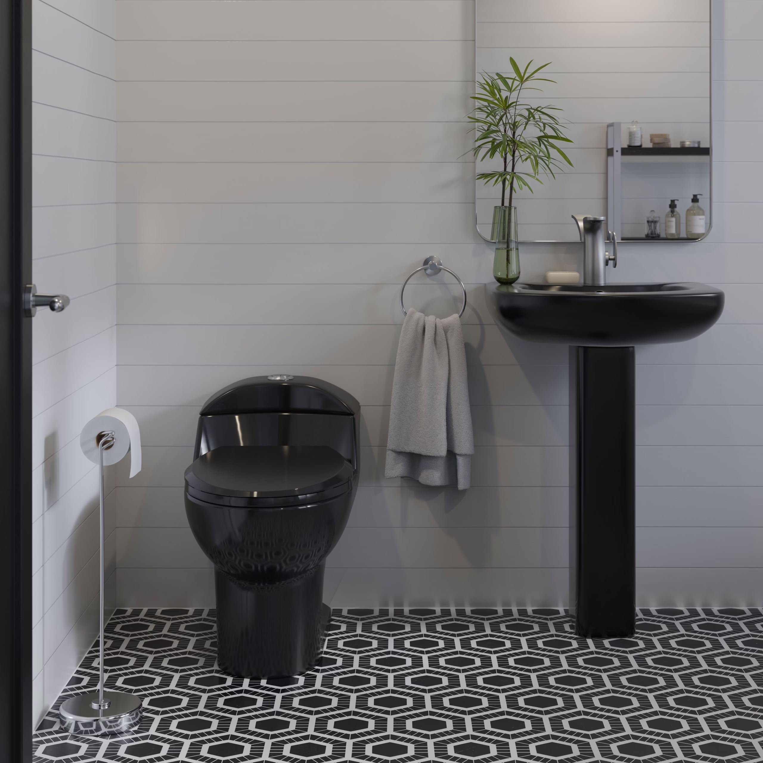 - Material & Finish Accuracy: Physically-based shaders for vitreous porcelain, brushed gold/brass, chrome, matte black coatings, silicone seals, and low-iron glass—tuned for true-to-life reflections and refractions.