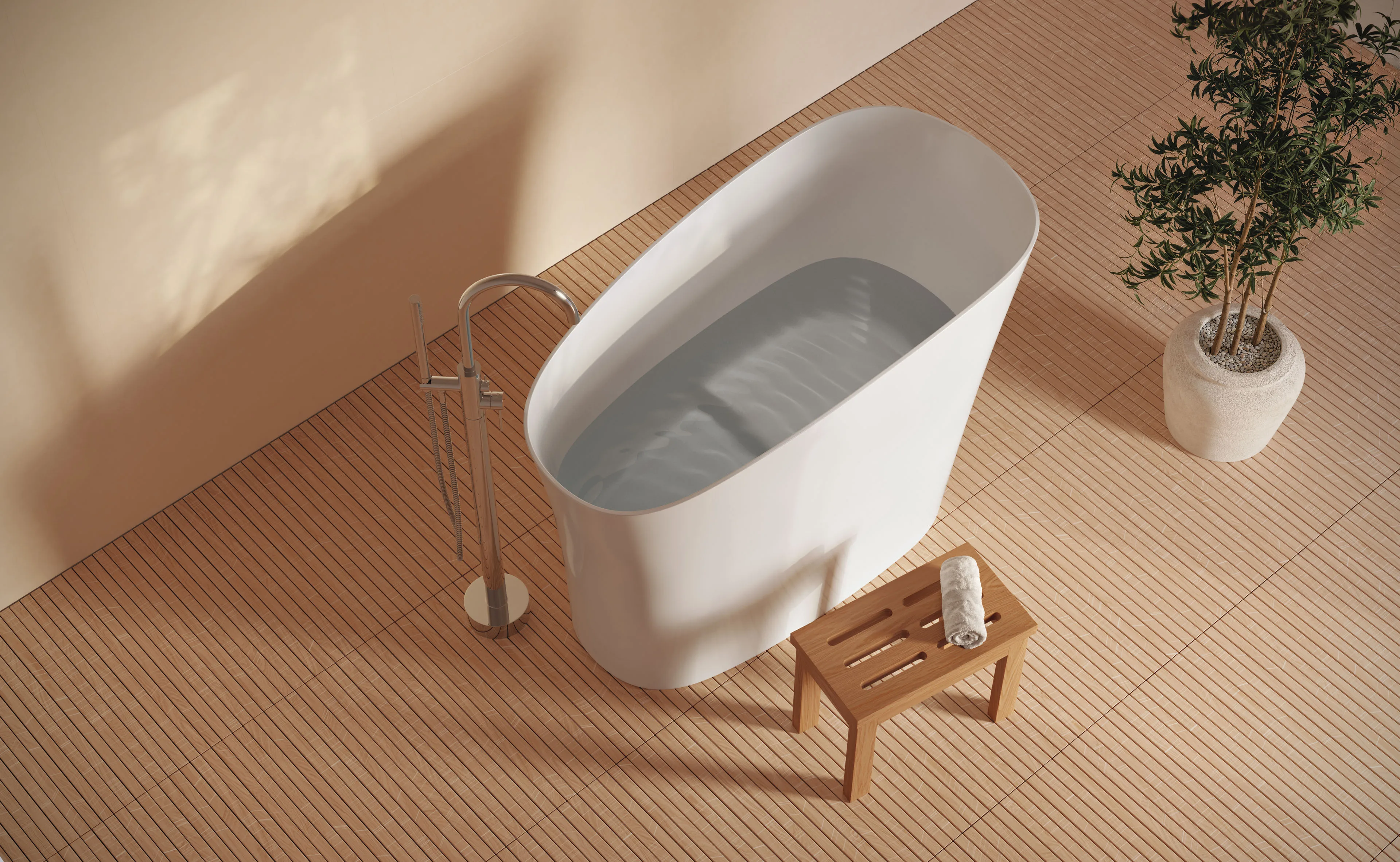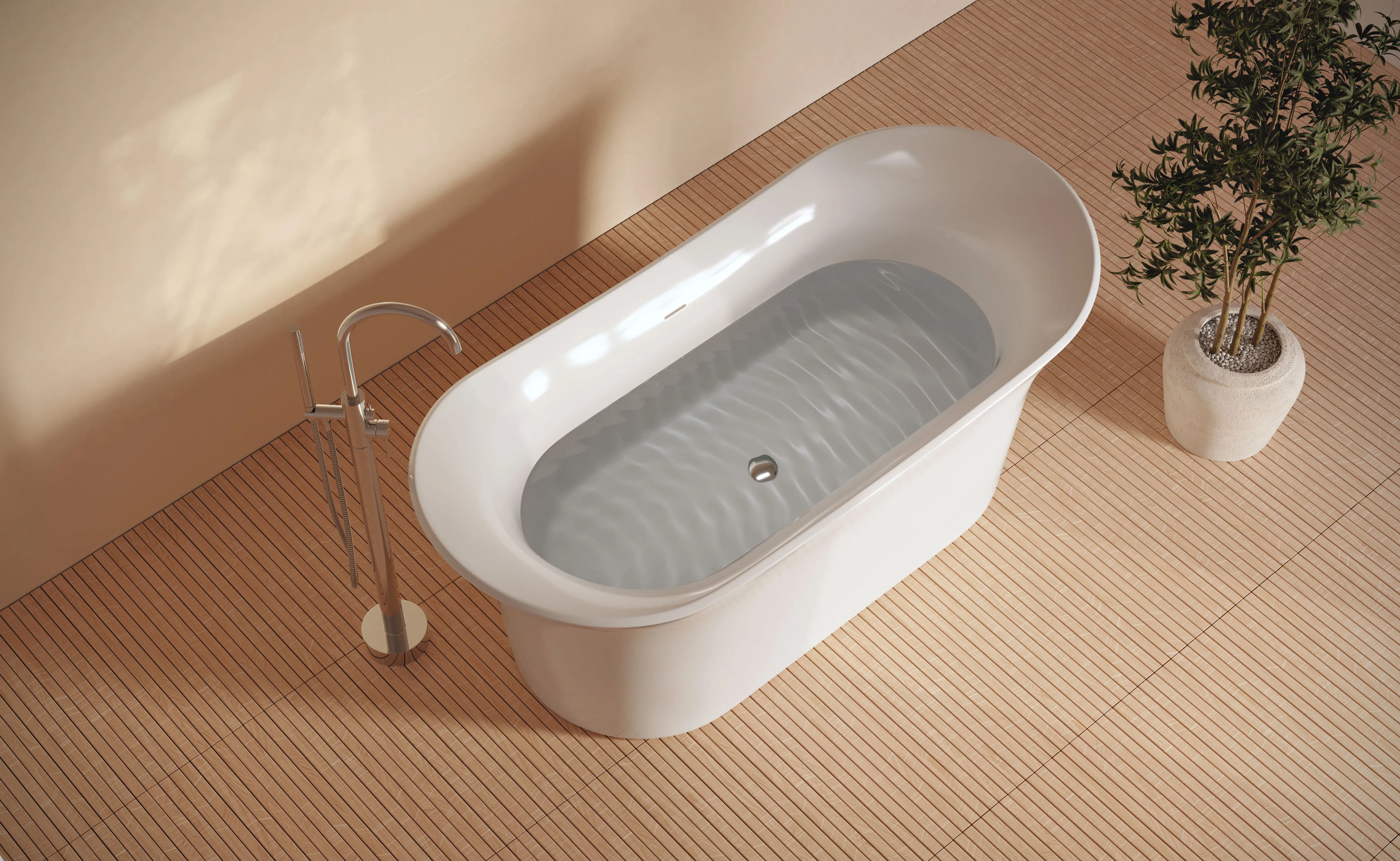- Lifestyle Visualization: Optional 3D interior visualization scenes placing the bathtub in contemporary bathroom environments to showcase lighting, reflections, and spatial context.