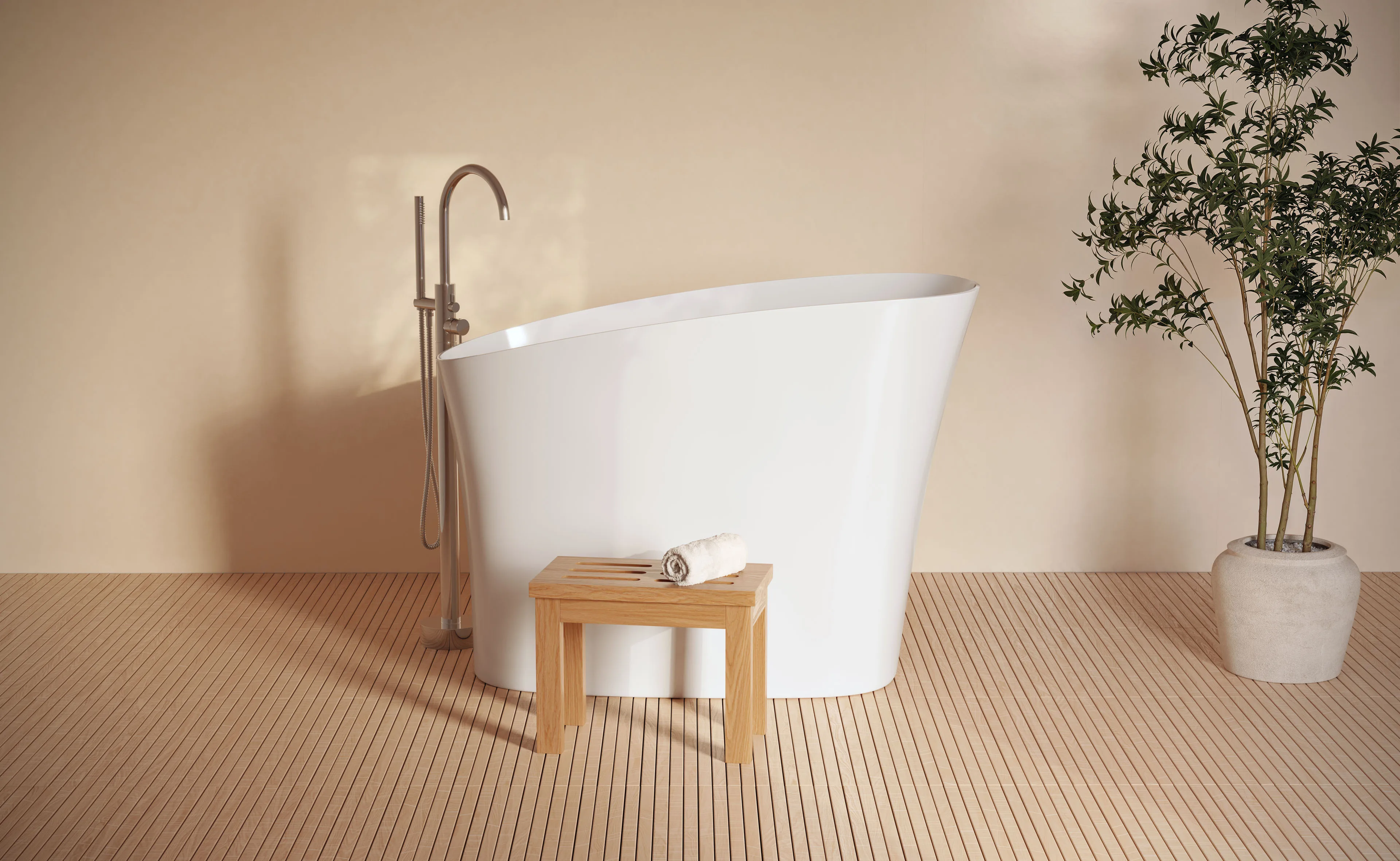 3D Corner created a series of photorealistic 3D renderings of a luxury freestanding bathtub, designed to highlight its sculptural form, high-quality materials, and elegant minimalism. The visuals showcase the product in both white-background packshots and styled lifestyle scenes, providing the client with versatile imagery for eCommerce, catalogs, and marketing campaigns. The clean composition, natural lighting, and fine detailing ensure that every curve and finish of the bathtub is represented with precision and realism.