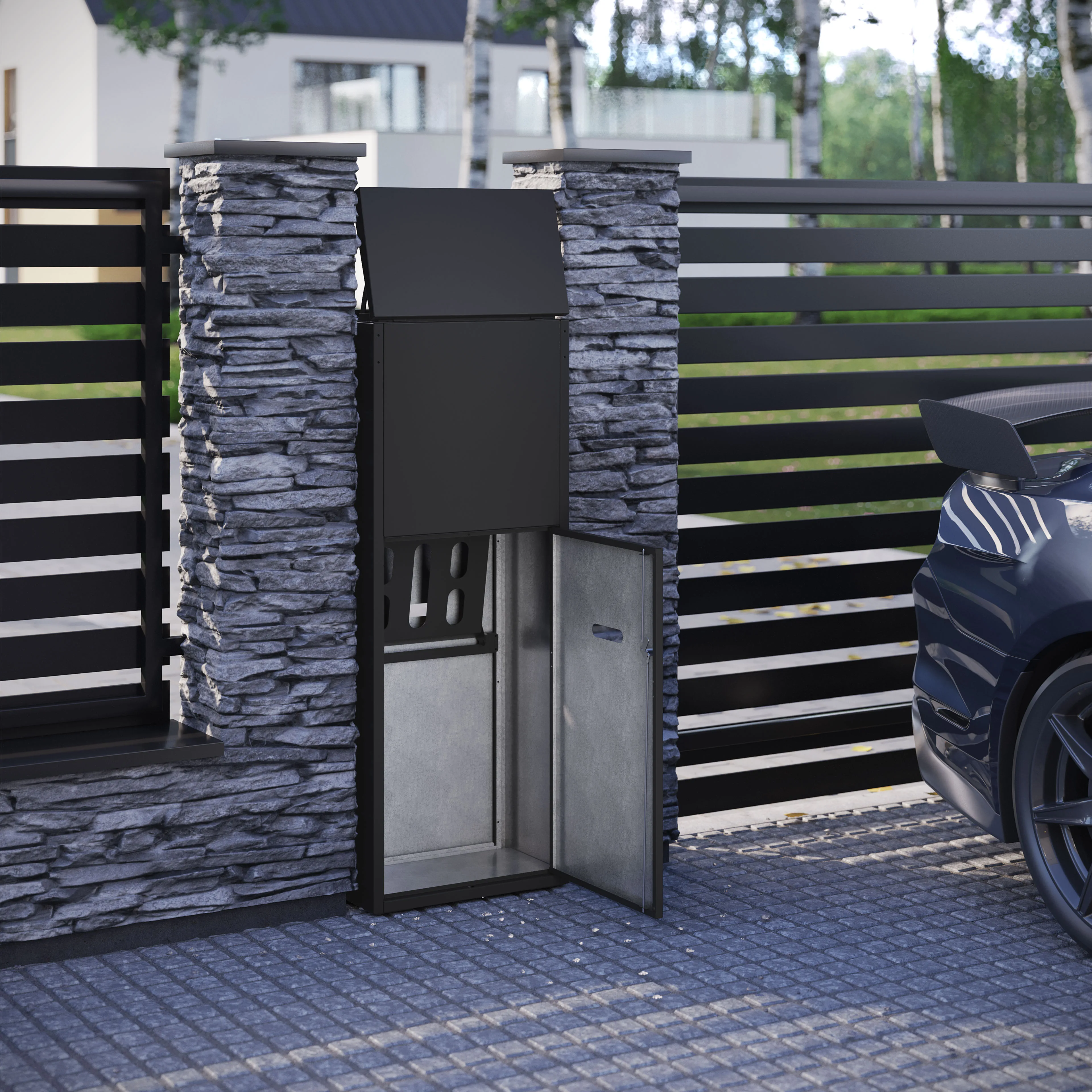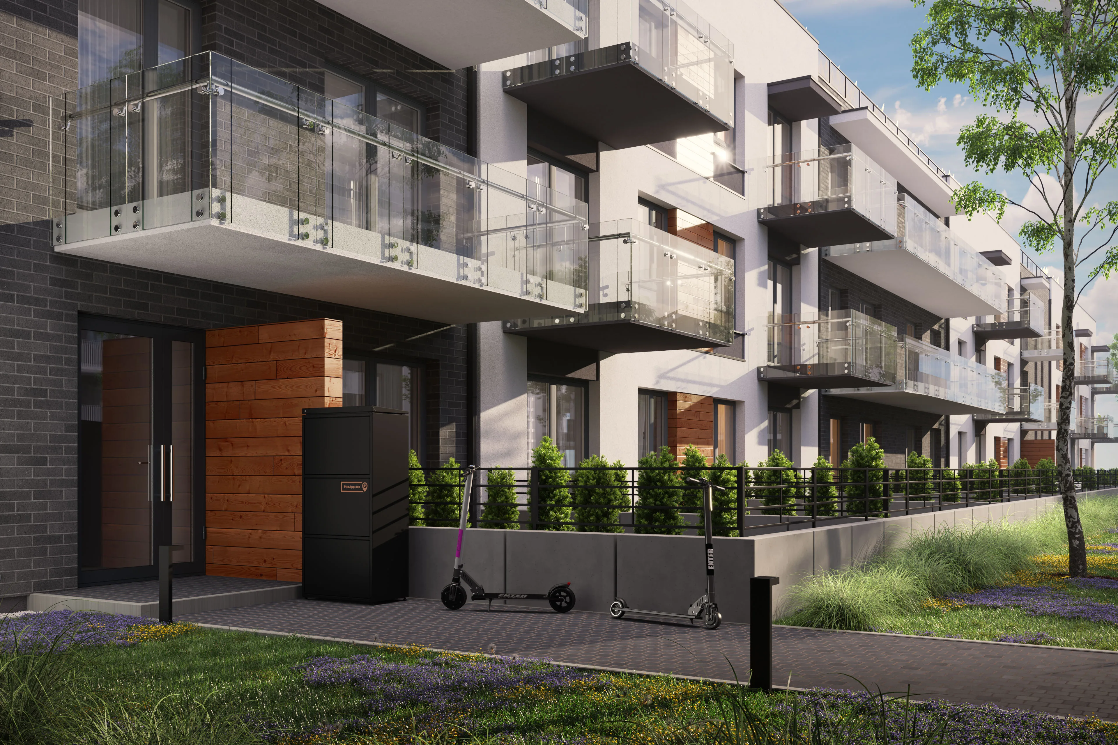3D Corner produced a cohesive suite of photorealistic 3D product renderings, white-background packshots, and architectural lifestyle visuals that present the PickApp Box smart parcel lockers across single-family, multifamily, and commercial settings—built for sales collateral, product pages, and campaigns.