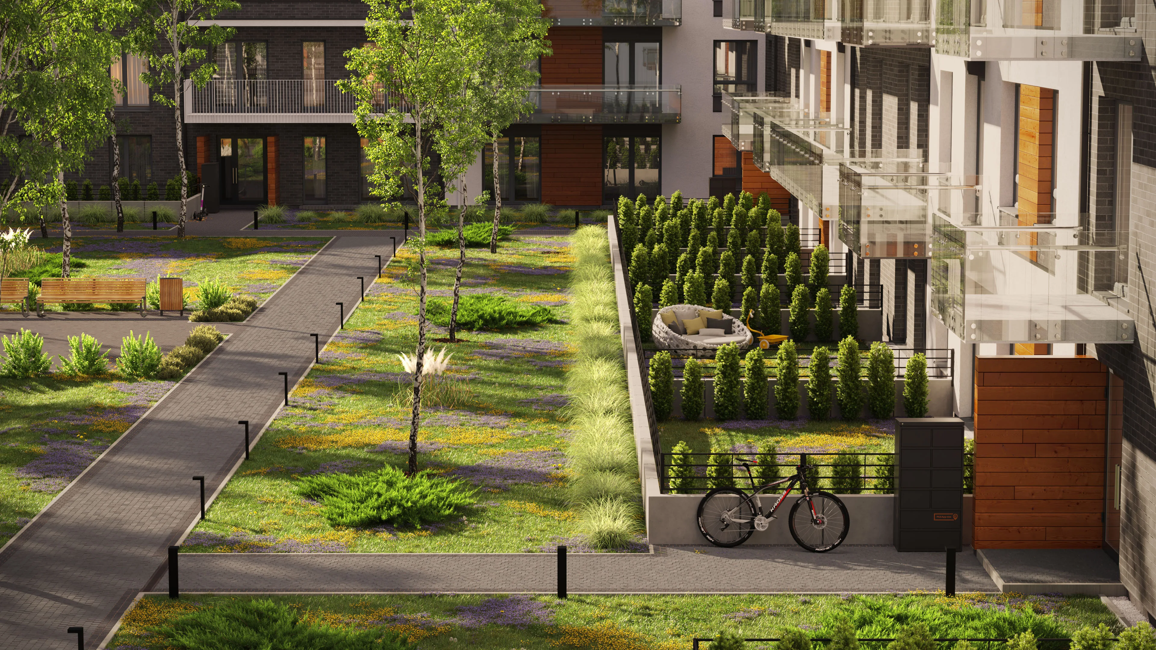 - Lifestyle Exteriors: Contextual stories with paving patterns, greenery, bikes/scooters, and realistic material interactions to reinforce everyday use.