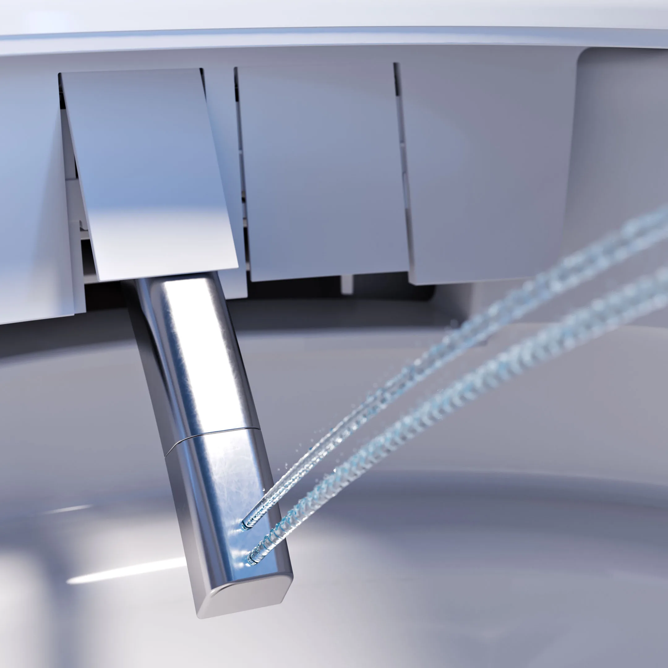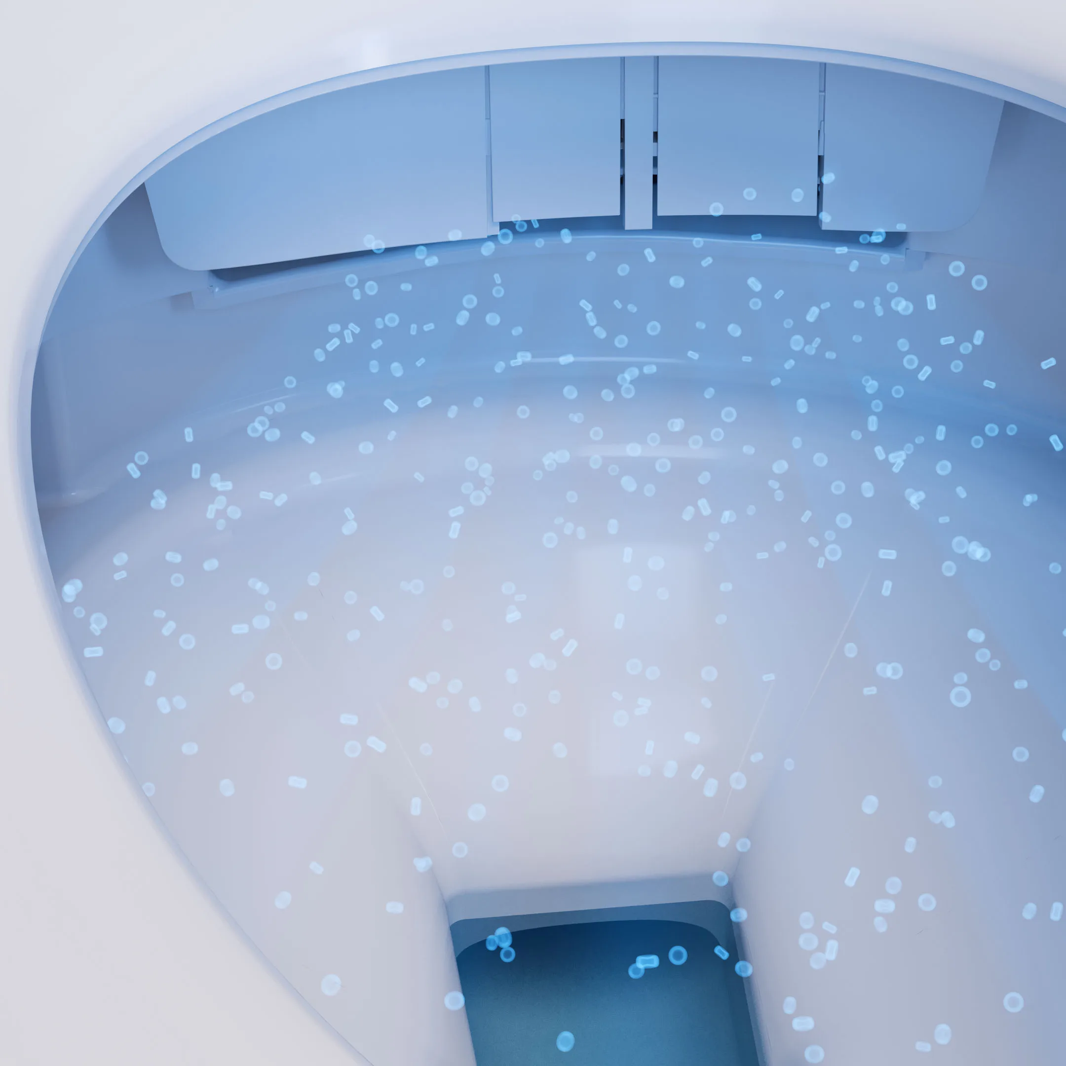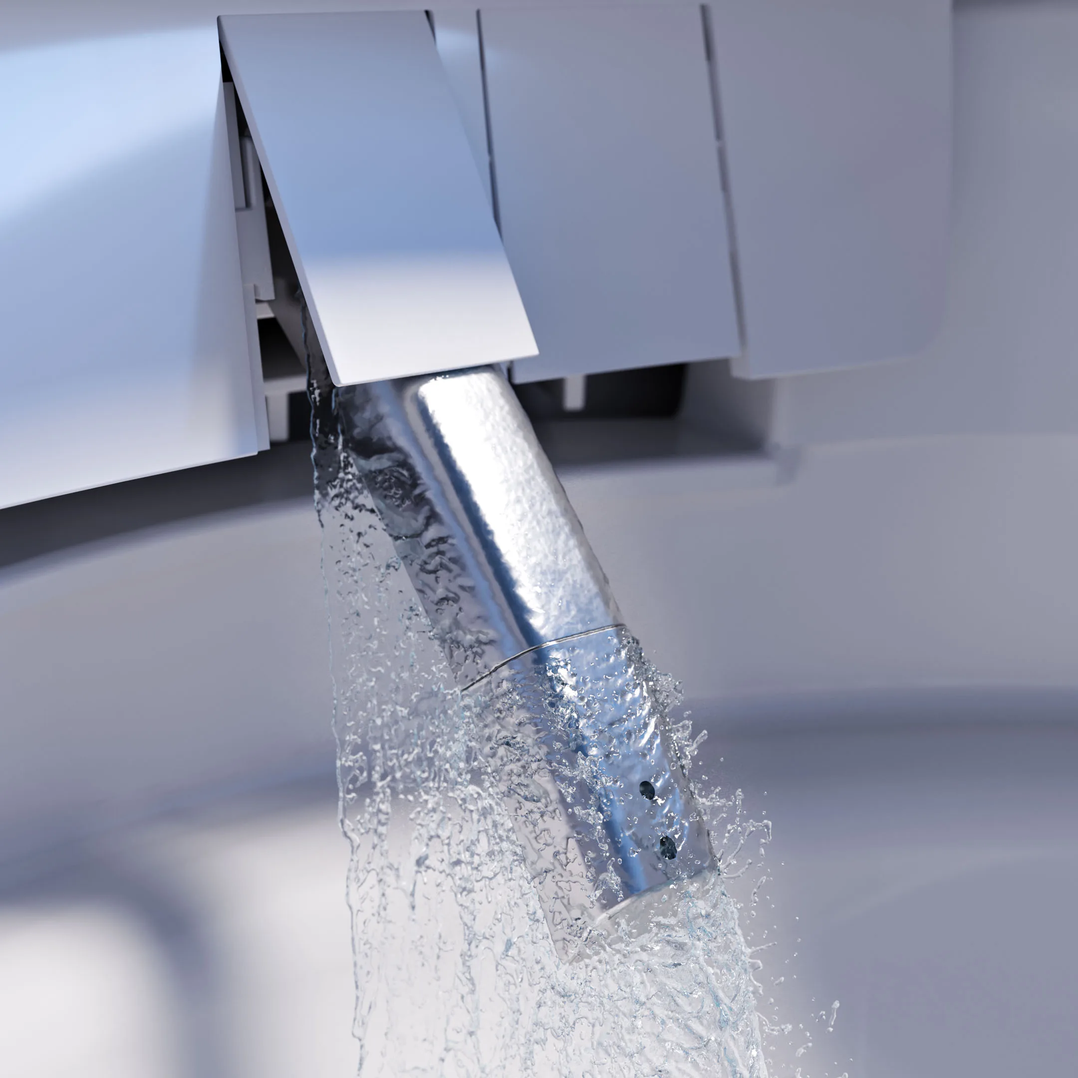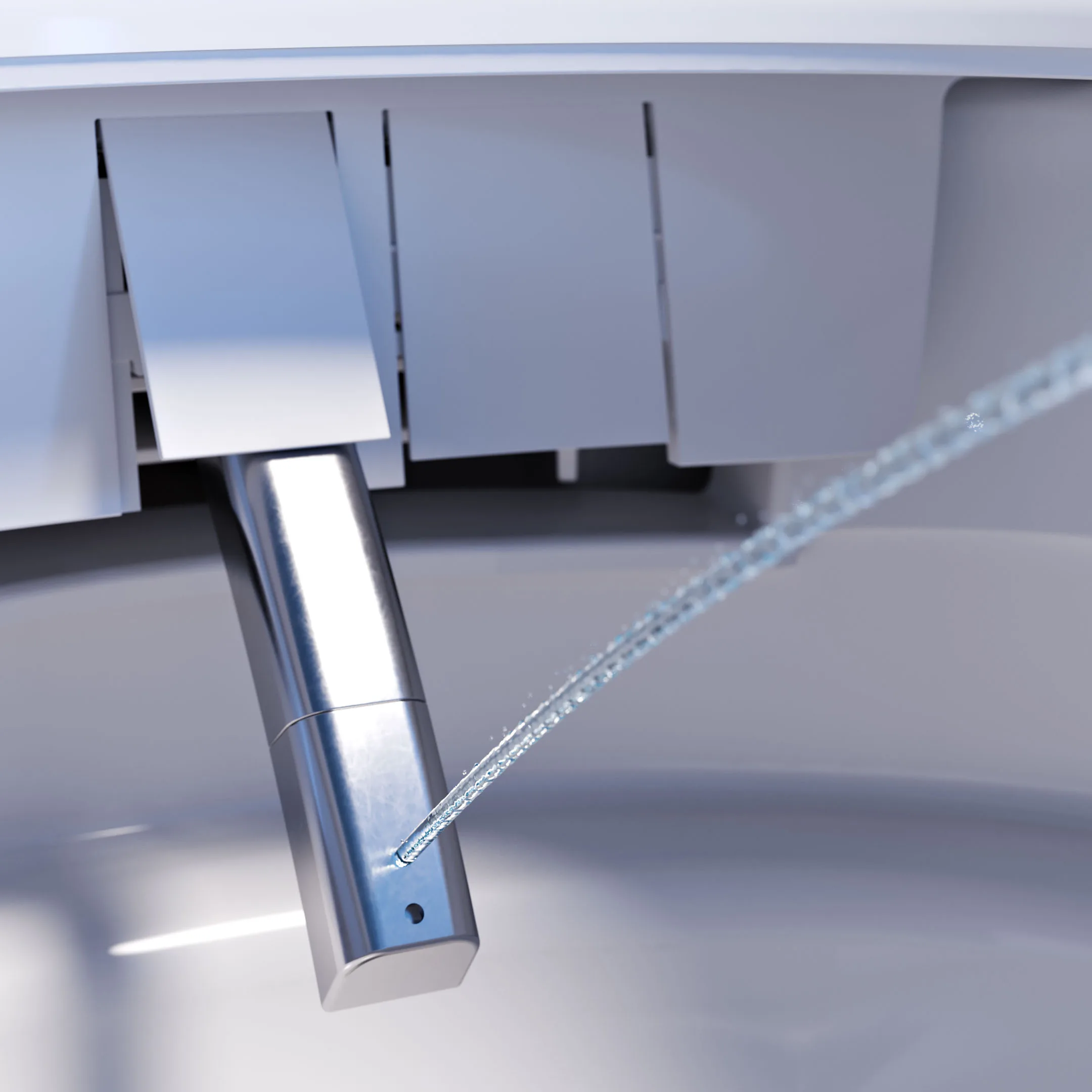 - Functionality Visualization: Animated demonstration of the smart toilet’s features, including bidet nozzle spray, automatic lid open/close, vortex flush, seat heating, and UV disinfection — rendered in cinematic close-ups for social and product videos.